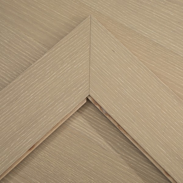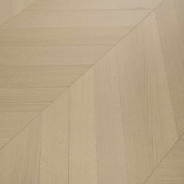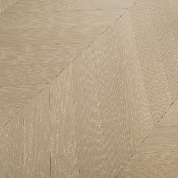 Crafted from authentic real wood engineered oak, our White Washed Oak Engineered Chevron Flooring features the iconic chevron pattern, adding visual interest and sophistication to any room. The white washed finish brings a light, coastal-inspired aesthetic, while the lacquered engineered wood flooring coating adds a protective layer, resisting scratches, stains, and daily wear — making it ideal for high-traffic areas and diverse interior styles, from modern minimalist to rustic chic.